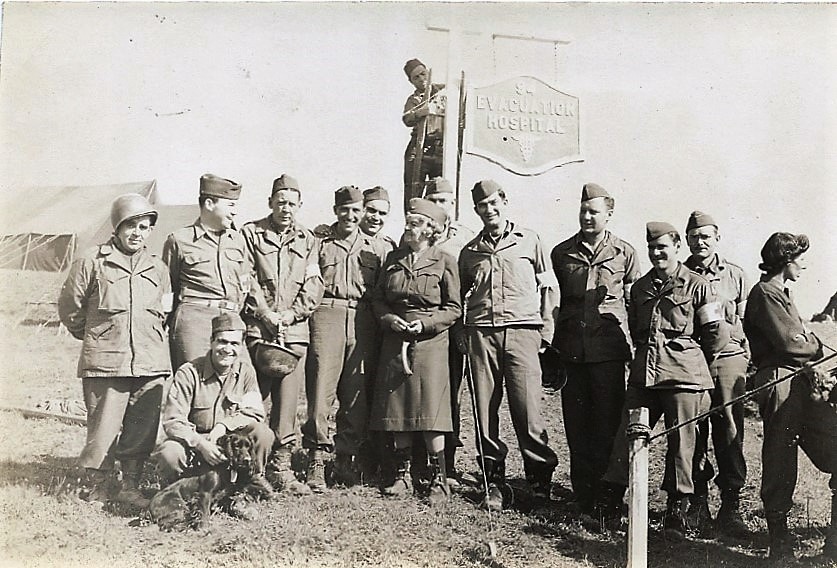Irv Carl second from left, standing, at the 94th Evacuation Hospital in Italy, 1945